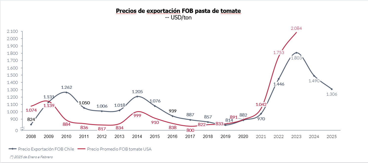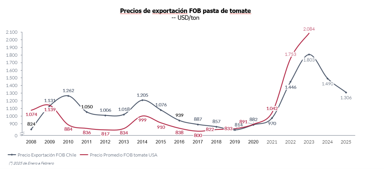El negocio de Pulpa, Pastas y Jugos generó ingresos ordinarios por US$ 24,2 millones al 31 de marzo de 2025, en comparación con los US$ 28,6 millones obtenidos el año anterior, a igual fecha, lo que representa una disminución de 15,4%. Esto explicado por un menor precio de ventas en pasta de tomates.